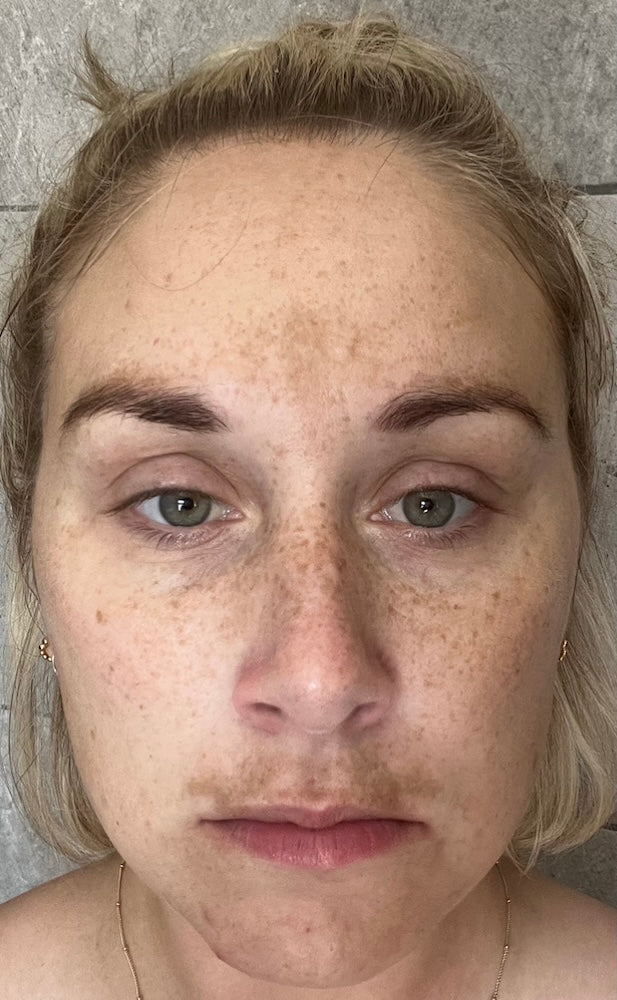 When you first start using Enlighten, pigmentation may look darker before it gets lighter, that’s normal. It’s because the skin around the pigment is evening out, making spots more visible initially. Give it 3–4 months of consistent use: it's the safest, most evidence-based way to reduce pigmentation.