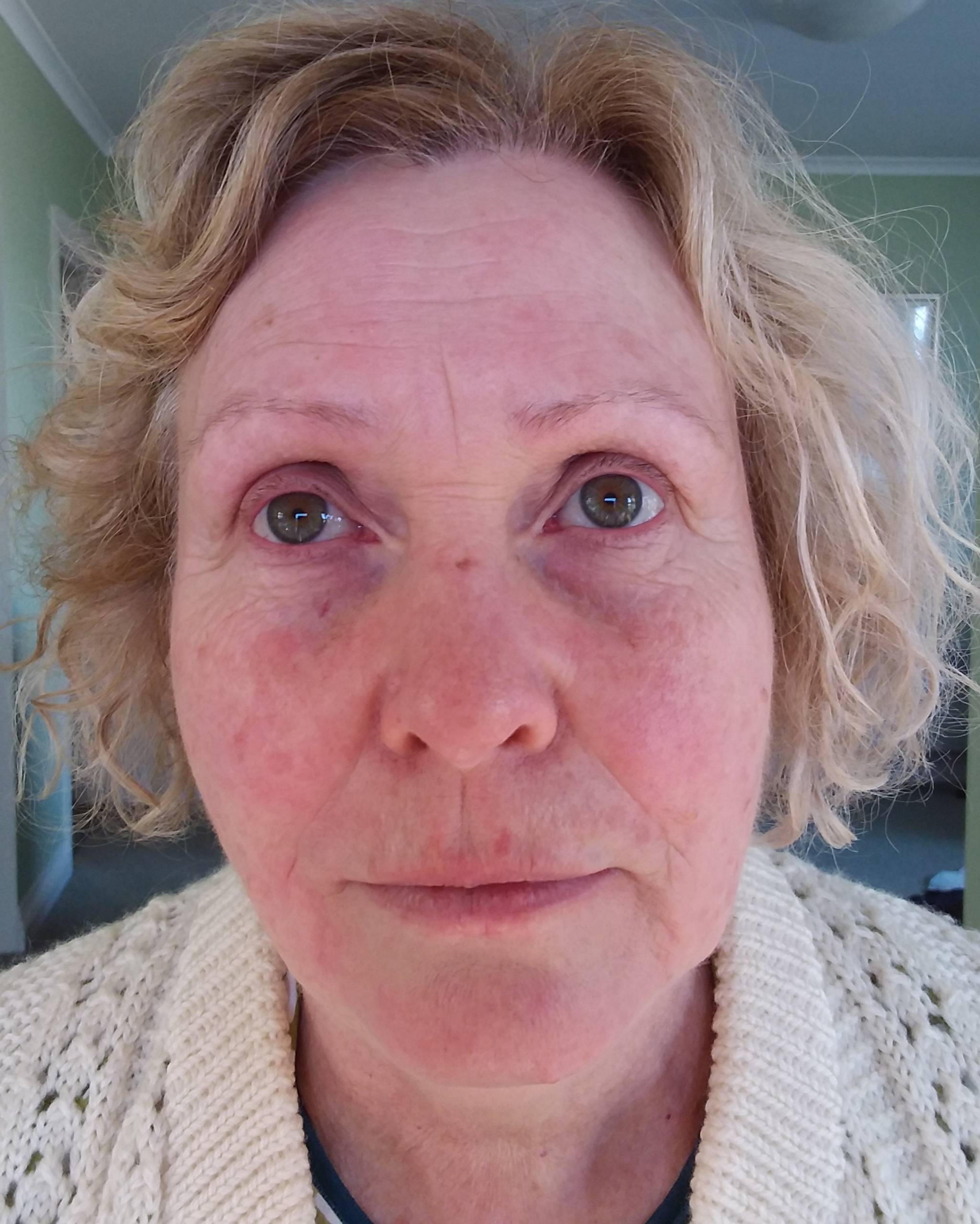 "I had blotchy skin tone and at aged 50 wrinkles appearing. I have been using ESK for a year now and it is a top quality facial skincare product. My skin tone is much more even and the redness is gone. Both photos are taken without any makeup. I use the Pigmented/Age Spot Kit on my skin. Thank you Esk for developing this skincare range."