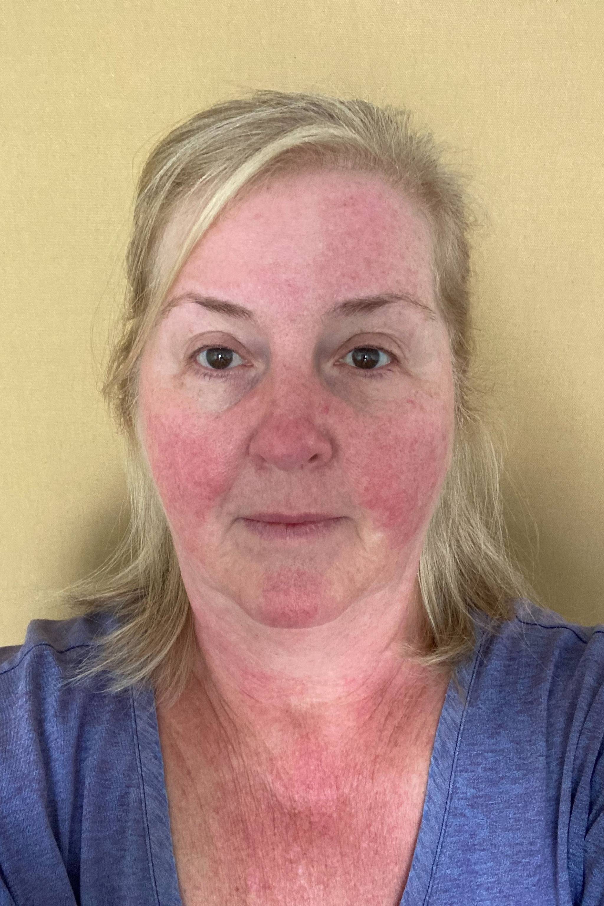 "My name is Marion and I've recently been diagnosed with Rosacea. I've always had dry skin but for the last year I've had a dry patch around my mouth and nothing has cleared it despite repeated visits to health professionals and many creams and antibiotics. The condition got worse with a lumpiness on my skin.