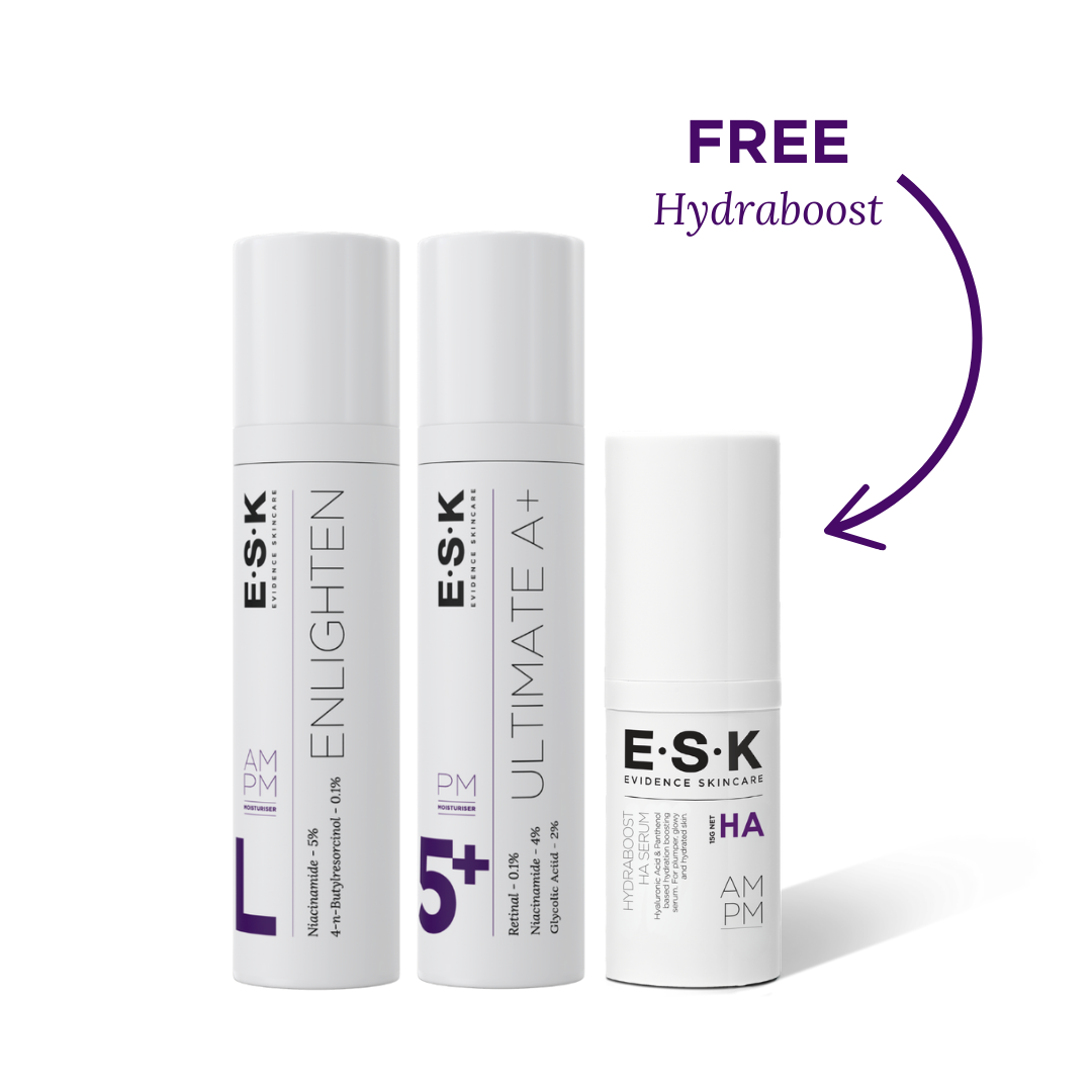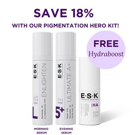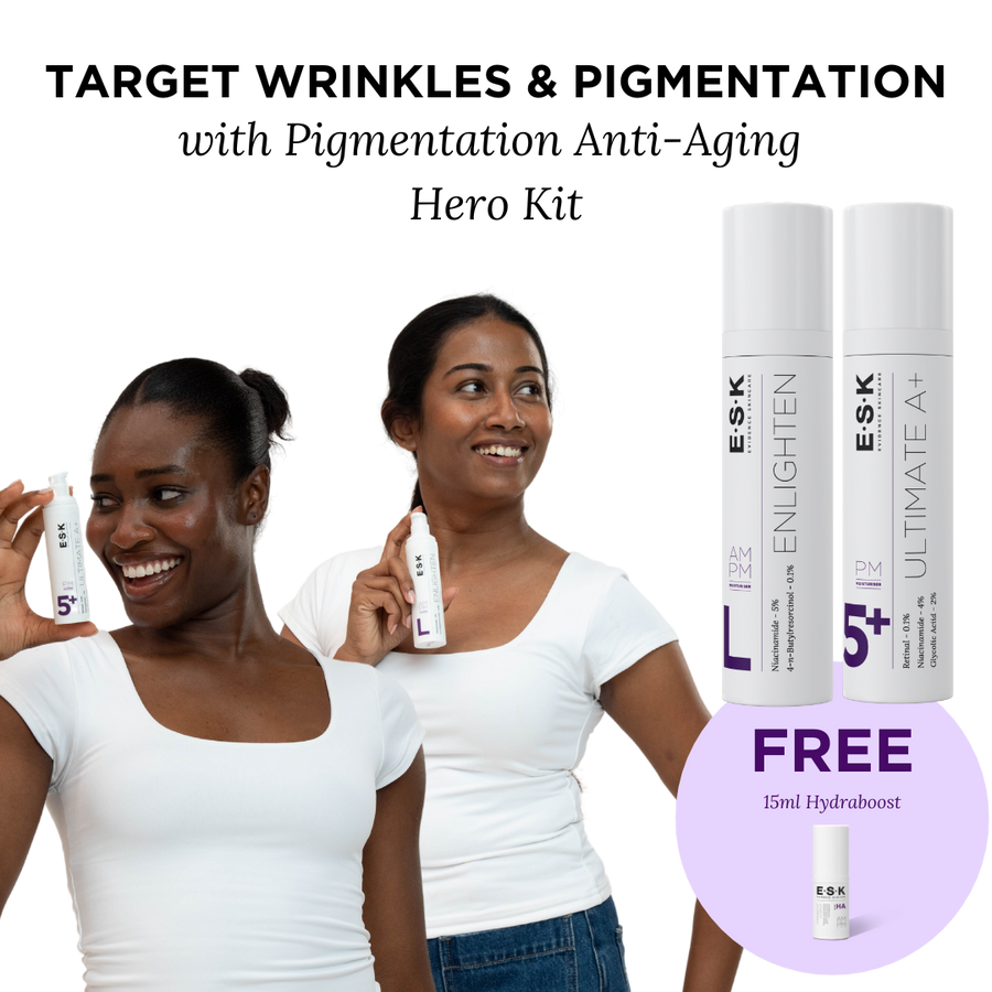 When you order the Pigmentation Anti-Aging Hero Kit from this page, you’ll get a FREE 15ml Hydraboost, our hyaluronic acid serum with three molecular weights for deep, layered hydration. Lightweight, fast-absorbing, and perfect for trialling or travel.
